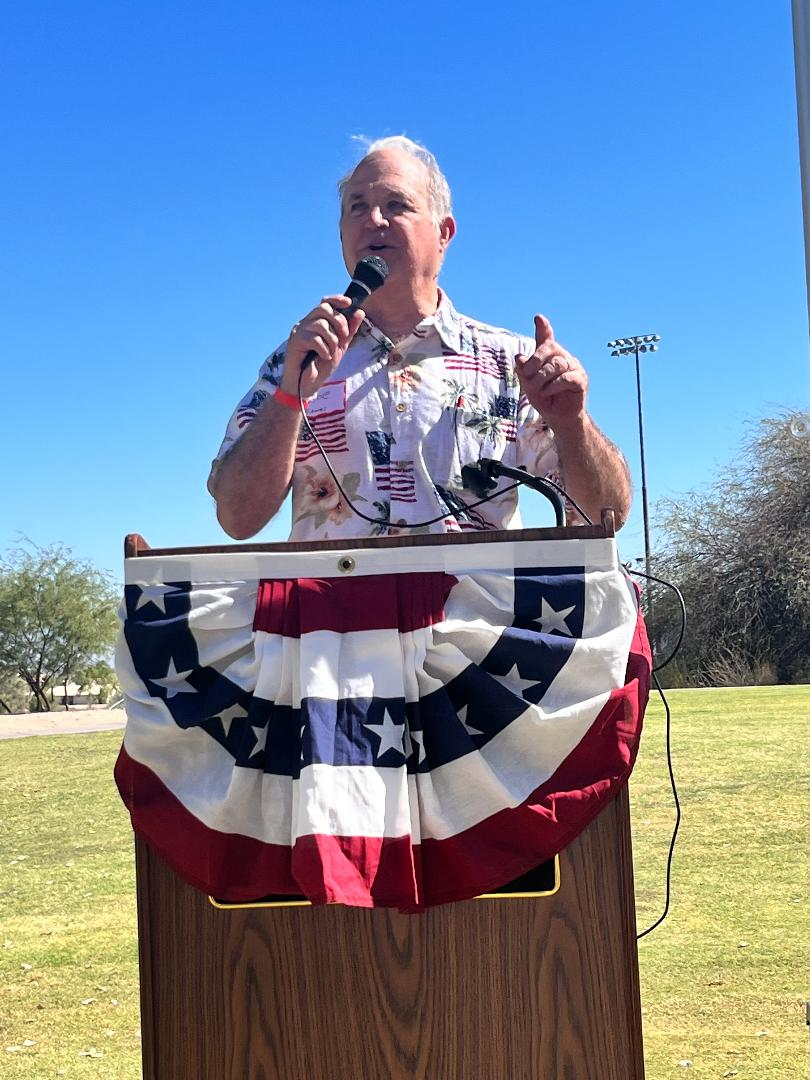 Alex Kolodin, Candidate running in LD 23 (which includes Fountain Hills) for a seat in the Arizona State House, provided one of the many strong presentations to the nearly 200 attendees at the recent FHRC Annual Picnic.